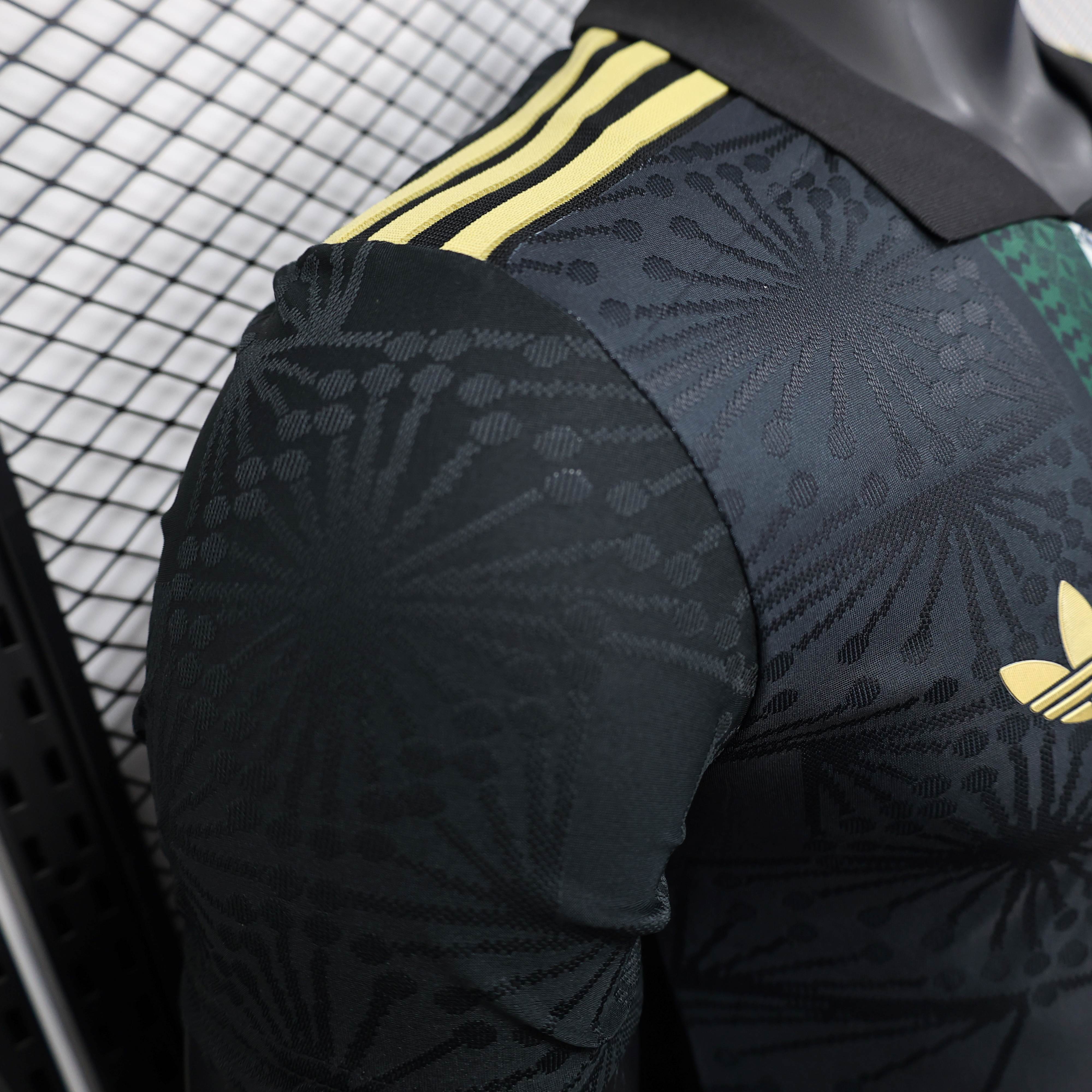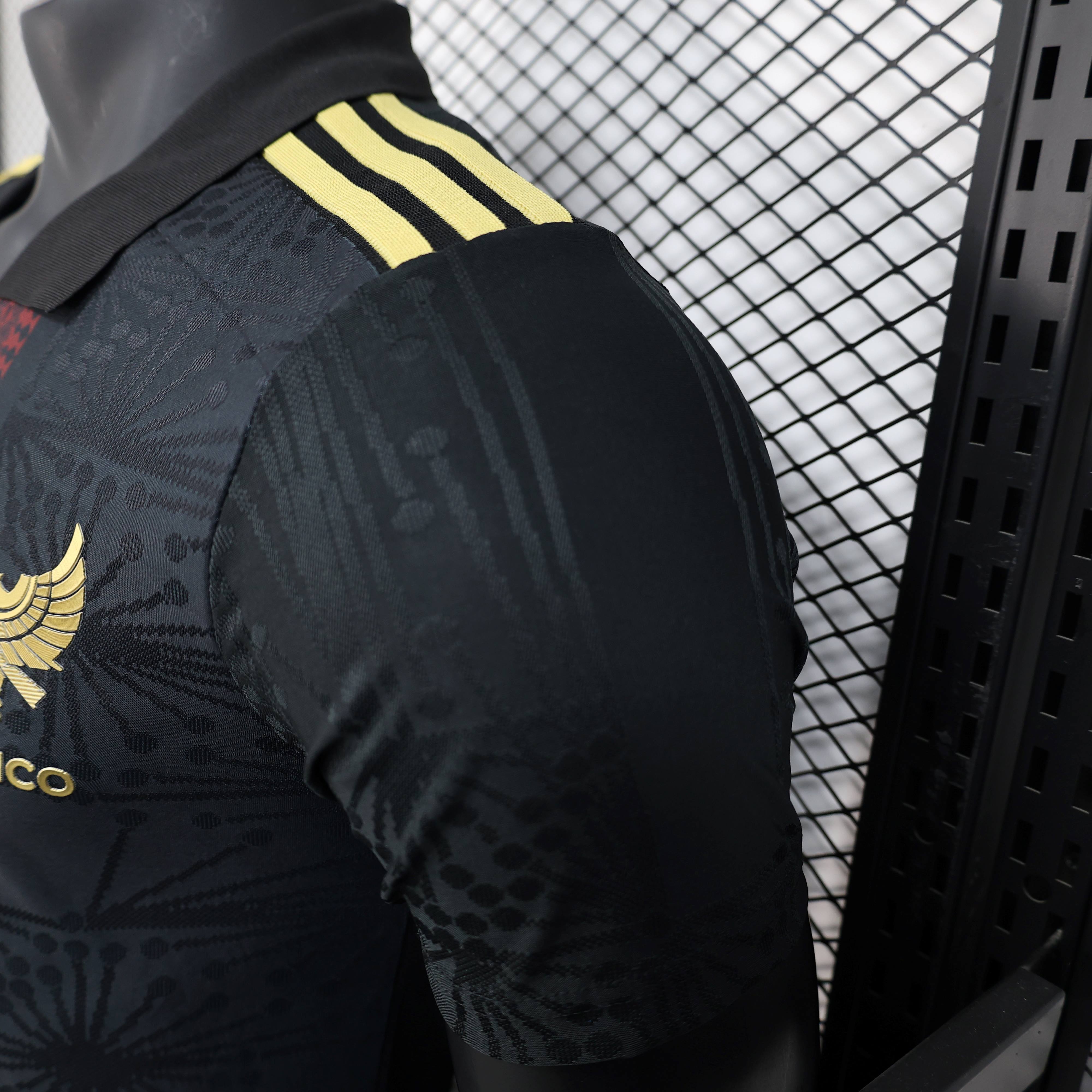 Mexico 25-26 Black Polo Jersey with Red White and Green Decorative Pattern - Player Version