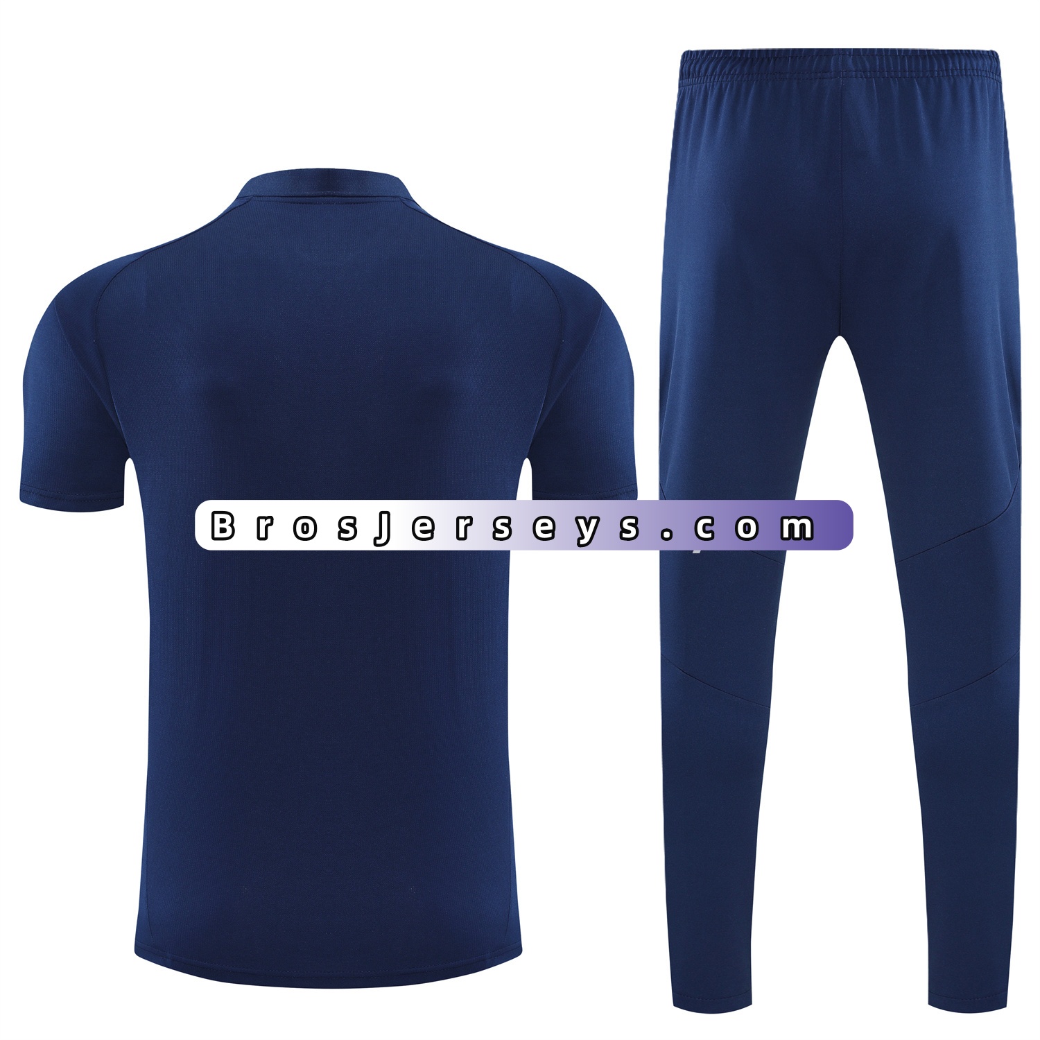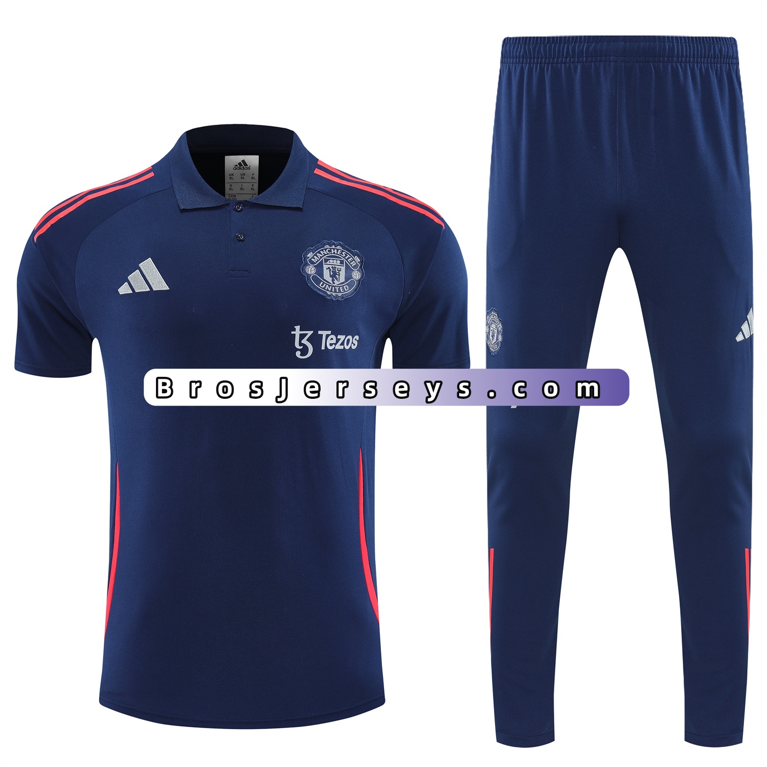 Manchester United 25-26 POLO Short-Sleeve Training Set - Deep Blue Top and Pants with Red Stripes