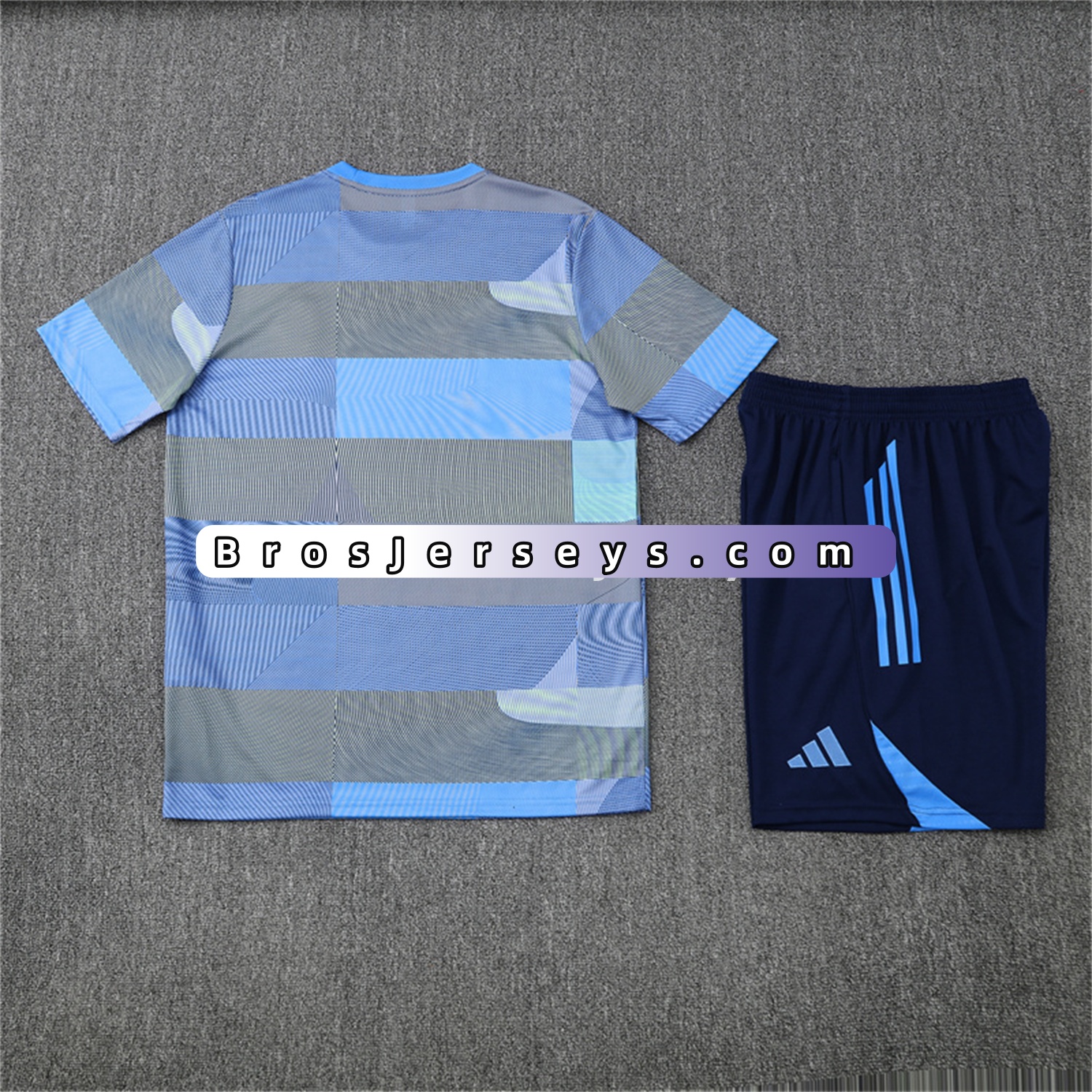 Real Madrid 25-26 Pre-Match Short-Sleeve Training Set - Blue-Gray Camouflage Top and Blue Shorts